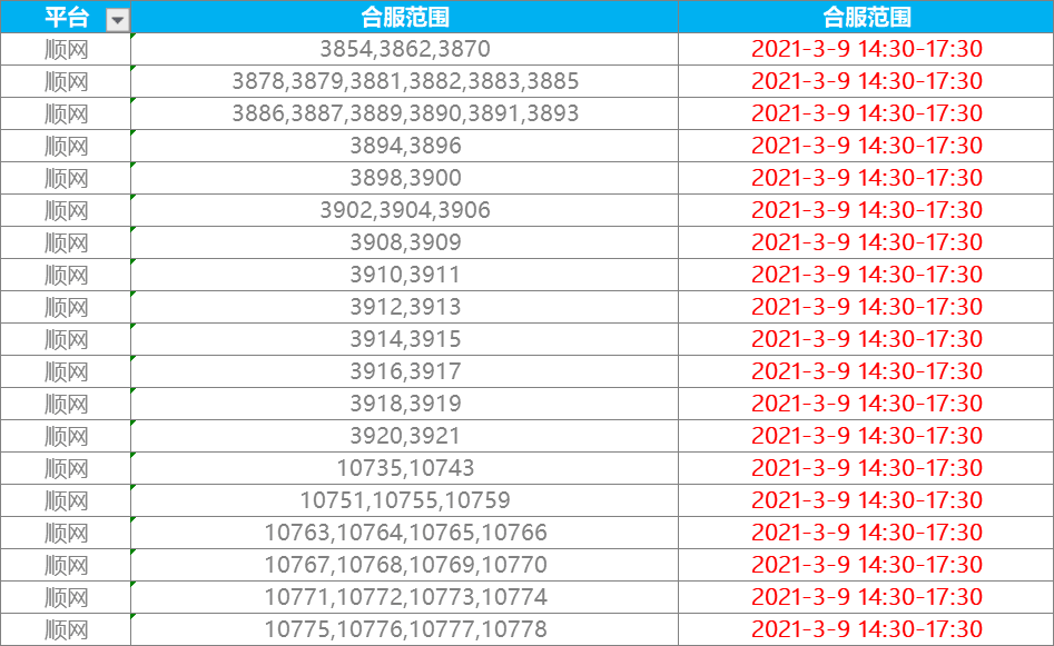 为了给玩家们提供更好的游戏体验并活跃游戏气氛,让玩家们结识更多的游戏伙伴、体验更多的挑战,《传奇霸业》顺应广大玩家的需求,将对部分区服进行合区处理。对以下服务器进行重组合服。合服完成后玩家可以通过原有账号登陆数据互通后的服务器.