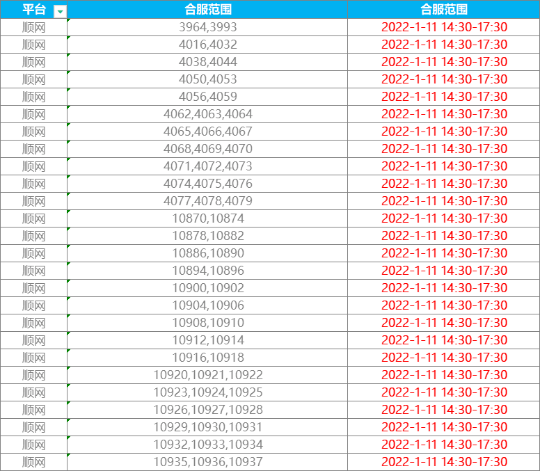 为了给玩家们提供更好的游戏体验并活跃游戏气氛,让玩家们结识更多的游戏伙伴、体验更多的挑战,《传奇霸业》顺应广大玩家的需求,将对部分区服进行合区处理。对以下服务器进行重组合服。合服完成后玩家可以通过原有账号登陆数据互通后的服务器.