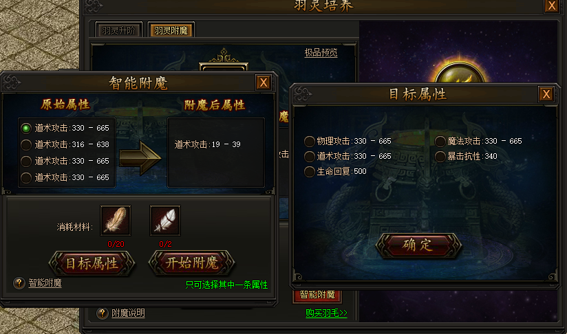 勾选原始属性后,需再选择目标属性才可进行智能附魔