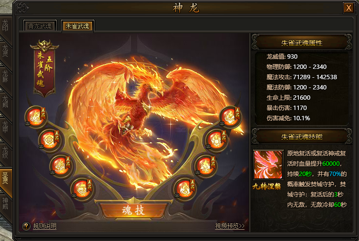 魂技系统:消耗朱雀魂魄提升魂技可增强套装效果
