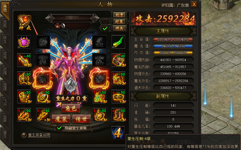 全身(12件)装备重生压制全部达到一定点数时,额外激活对应级别的重生压制