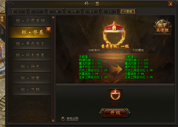头像框可在主界面左上角、主界面上方中间、风云榜显示